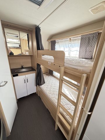 - 2021.07.hóban újonnan forgalomba helyezett, modern, megkímélt családi lakókocsi emeleteságyas gyerekszobával, franciaággyal és étkezővel, mely szintén ággyá alakítható, így 6 fő részére nyújt kényelmes fekhelyet! Komplett konyhával: toronyhűtőszekrény, mosogató, gáztűzhely! Tágas zuhanyfülkével, beépített kazettás wc-vel, beépített víztartállyal és melegvízrendszerrel felszerelve! Az ablakokon és a panoráma tetőablakokon kombirolókkal, az ajtón szúnyoghálóval felszerelve! A franciaágy ágyneműtartója kívülről is kényelmesen pakolható a szervízajtón keresztül! A vontatást stabilizátoros vonófej segíti! A lakókocsihoz tartozik egy zárt elősátor is! Teljesen útra készen adjuk át! Az ár tartalmazza a friss műszaki vizsga és a névre írás költségét is!