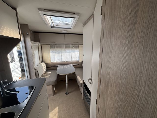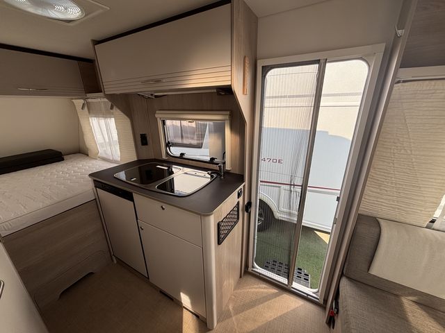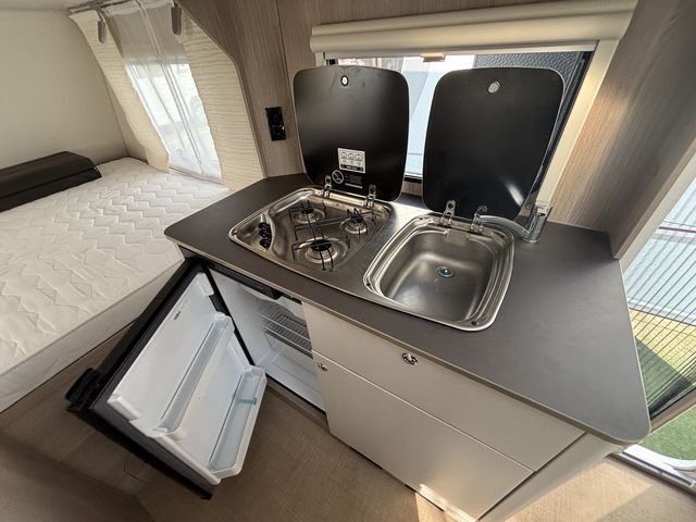 Újszerű lakókocsi sok extrával felszerelve! Franciaágyas hálófülkével és étkezővel, mely szintén ággyá alakítható, így 4 fő részére nyújt kényelmes fekhelyet! Mosdófülkével, beépített kazettás wc-vel, beépített víztartállyal és melegvízrendszerrel felszerelve! Komplett konyhával: hűtőszekrény, mosogató, gáztűzhely! Az ablakokon és a panoráma tetőablakon kombirolókkal, az ajtón szún yoghálóval felszerelve! Gázfűtéssel, elektromos fűtéssel -Ultraheat-, valamint Fiamma Turbo Vent ventillátoros tetőablakkal, így egész évben komfortosan használható! A franciaágy ágyneműtartója kívülről is kényelmesen pakolható a szervízajtón keresztül! Az értékek biztonságban elhelyezhetőek a beépített széfben. Előtetővel, mely alatt komfortosan berendezkedhetünk a kempingben, hiszen külső 230/12V-os aljzat, valamint külső gázcsatlakozó és TV antenna csatlakozó is kiépítésre került! A lakókocsi vontatását stabilizátoros vonófej, valamint ATC menetstabilizátor segíti, a helyszíni mozgatásban pedig mover -lakókocsi mozgató rendszer- van segítségünkre! A lakókocsit teljesen útra készen adjuk át! Az ár tartalmazza a friss műszaki vizsga és a névre írás költségét is!