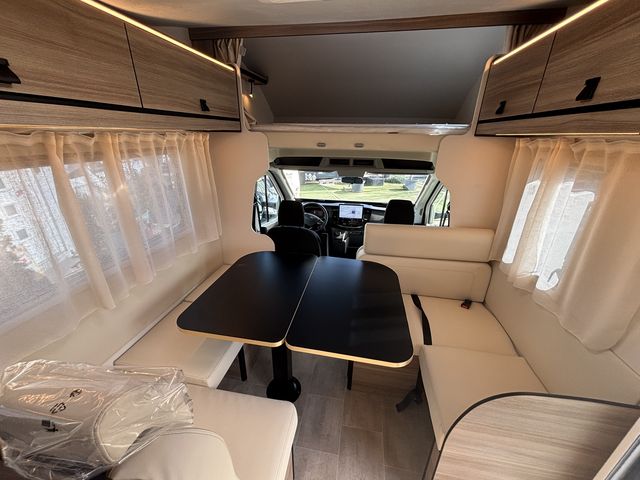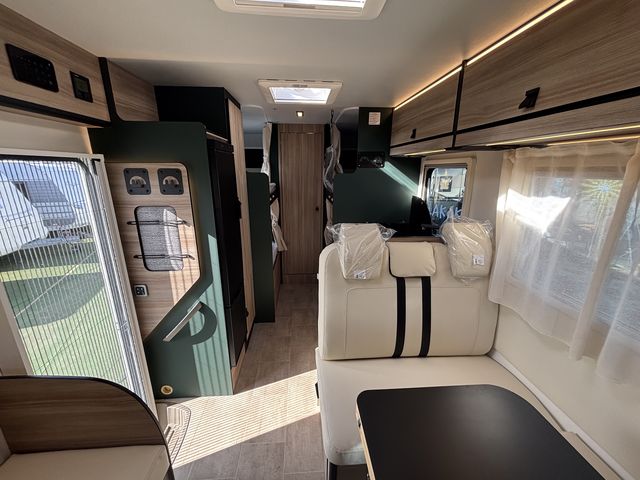 Vadonatúj családi lakóautó teljes értékű dupla emeletesággyal (78x200cm) és franciaággyal (140x220) az alkovban, így hat fix fekhellyel rendelkezik! Nagy méretű körüléssel, komplett konyhával: torony hűtőszekrény (141L) mosogató, gáztűzhely! Zuhanyfülkével, beépített kazettás wc-vel, beépített víztartállyal ( 20+65L), valamint szennyvíztartállyal (70L) felszerelve! A melegvízet és a fűtést Combi C4 gázkazán biztosítja. Az alsó emeleteságyak felhajtásával garázsok alakíthatóak ki, melyek a nagy méretű ( 95x135cm, illetve 95x115cm) szervízajtókon keresztül pakolhatóak kívülről! Az ablakokon és a panoráma tetőablakokon kombirolókkal, az ajtón szúnyoghálóval, a vezetőfülke ablakain sötétítőrolókkal felszerelve! Thule előtetővel, valamint hátfalra szerelt kerékpártartóval felszerelve! Jól felszerelt utasfülke szolgálja az utazás közbeni kényelmest. 8 sebességes automata váltó, fedélzeti computer, nagy LCD kijelző, bluetooth-os kihangosító, carplay, tempomat, digitális klíma, tolatókamera. A Fordpass alkalmazással nyomon követhetőek az autó technikai adatai, valamint aktuális műszaki állapota és földrajzi helyzete. A lakóautót teljesen útra készen adjuk át! Az ár tartalmazza a forgalomba helyezés és a névre írás költségét is!