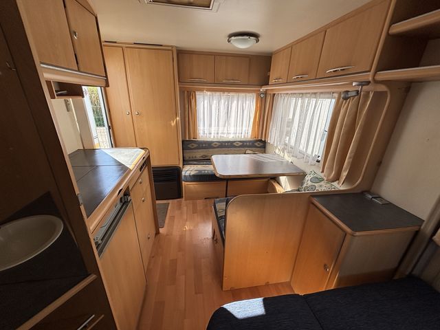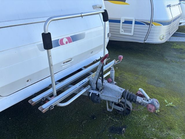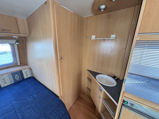 - Franciaágyas hálófülkével és étkezővel, mely szintén ággyá alakítható! Komplett konyhával: hűtőszekrény, mosogató, gáztűzhely! Zuhanyfülkével és beépített kazettás wc-vel! Az ablakokon kombirolókkal, az ajtón szúnyoghálóval felszerelve! A franciaágy ágyneműtartója kívülről is kényelmesen pakolható a szervízajtón keresztül. A vontatást stabilizátoros vonófej segíti! A kétkerekűek kényelmesen szállíthatóak a vonóháromszögre szerelt kerékpártartón! A lakókocsit teljesen útra készen adjuk át! Az ár tartalmazza a friss műszaki vizsga és a névre írás költségét is! Jelenleg moverre -lakókocsi mozgató rendszer- szerelve! A mover ára: 280'000Ft.