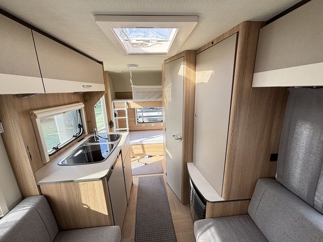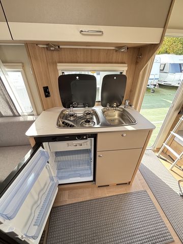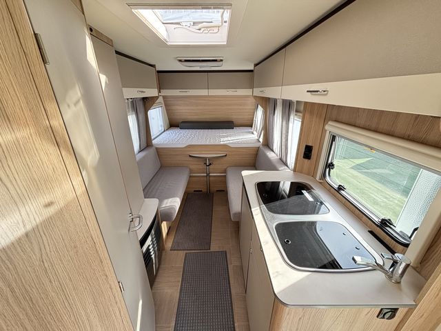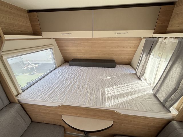 - Különleges elosztású családi lakókocsi franciaágyas hálófülkével, emeleteságyas gyerekszobával és étkezővel, mely szintén ággyá alakítható, így 6 fő részére nyújt kényelmes fekhelyet! Komplett konyhával: hűtőszekrény, mosogató, gáztűzhely! Mosdófülkével, beépített kazettás wc-vel, melegvízrendszerrel és hideg-meleg vizes külső tusolóval! Az ablakokon és a panoráma tetőablakon kombirolókkal, az ajtón szúnyoghálóval felszerelve! Tetőklímával, gázfűtéssel és ultraheat elektromos fűtéssel, így egész évben komfortosan használható! A vontatást stabilizátoros vonófej, a helyszíni mozgatást pedig mover -lakókocsi mozgató rendszer- segíti! A kétkerekűek kényelmesen szállíthatóak a hátfalra szerelt kerékpártartón! A franciaágy ágyneműtartója kívülről is könnyedén pakolható a szervízajtón keresztül! Az alsó emeleteságy felhajtásával egy garázs alakítható ki, melyet a nagy méretű szervízajtón keresztül pakolhatunk! A lakókocsit teljesen útra készen adjuk át! Az ár tartalmazza a névre írás költségét is!